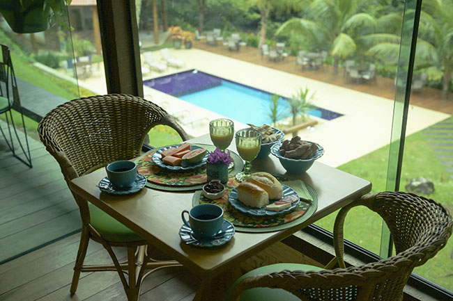 No nosso café da manhã temos frutas, pães variados, queijos, bolos, ovos caipira, tapioca, pão de queijo, dentre outras delícias. A noite sempre temos um prato especial, petiscos, caldos e massas para acompanhar um vinho ou cerveja, que tal?